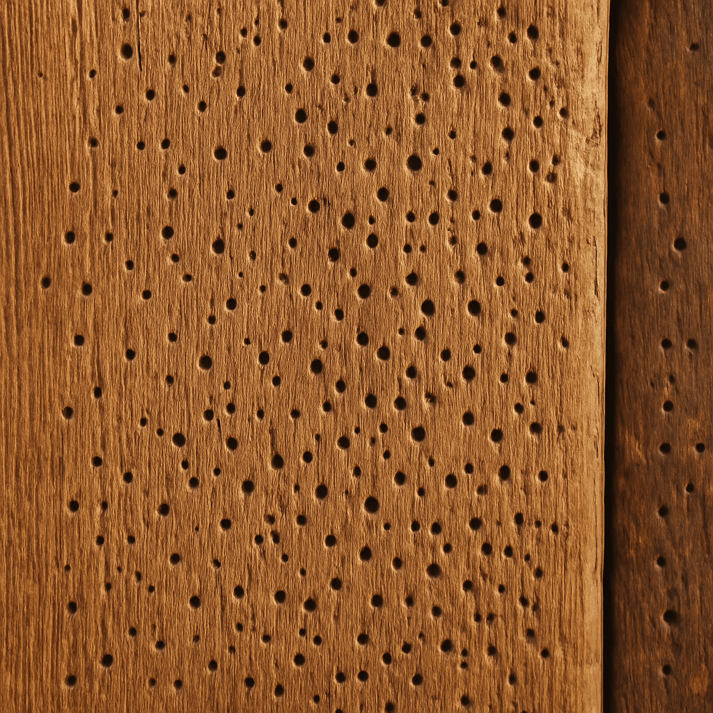 Jak wyglądają dziury w drewnie po kornikach?